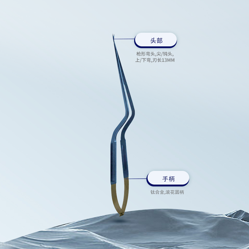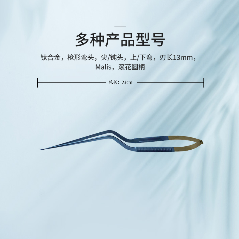 50.0231.23顯微剪槍形彎頭,23.0cm Malis 滾花圓柄 尖頭上彎 刃長(zhǎng)13mm