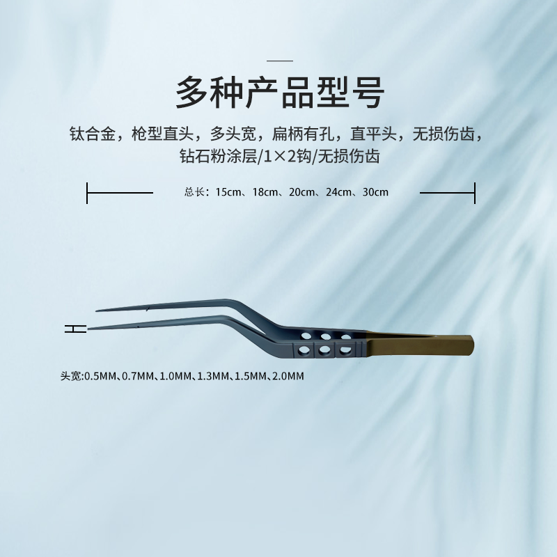 50.0307.24顯微鑷槍型直頭,24cm扁柄有孔,頭寬1.5mm 無(wú)損傷齒