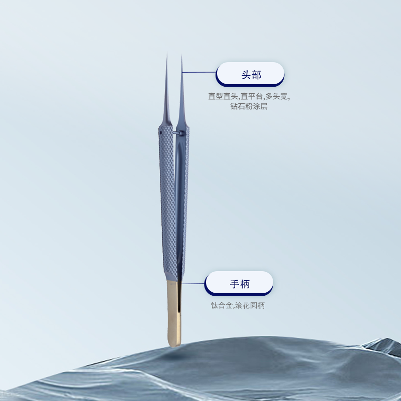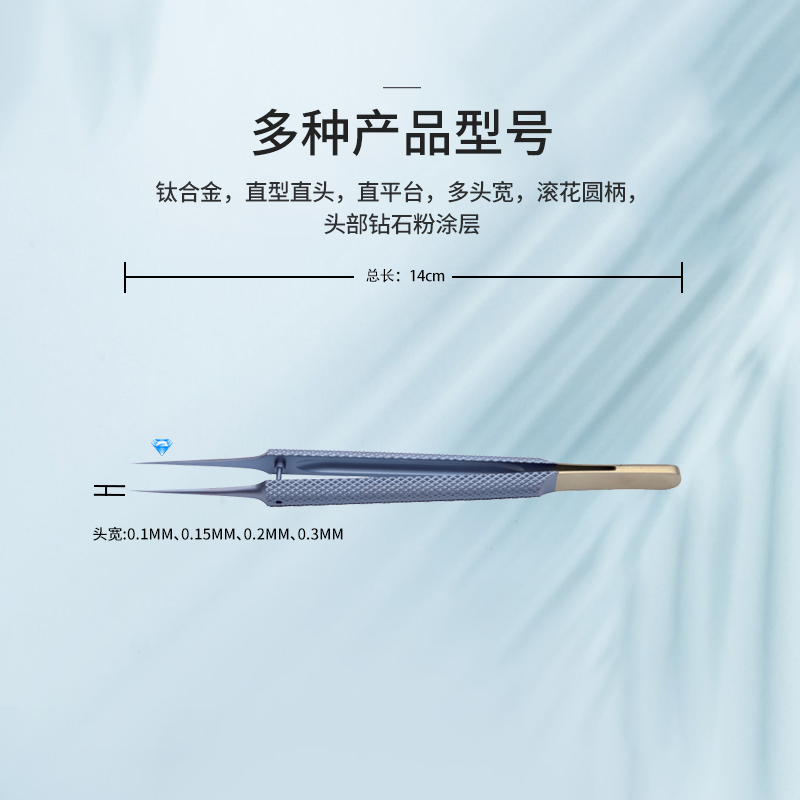 50.0010.02顯微鑷直型直頭,14cm滾花圓柄 直平臺(tái) 頭寬0.2mm鉆石粉涂層