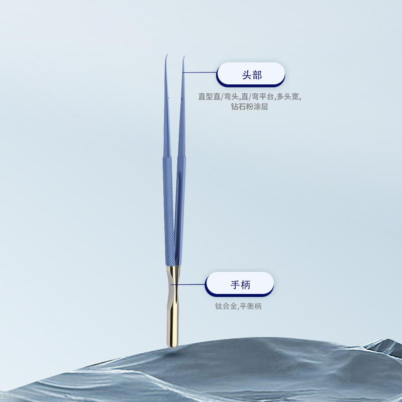 50.0017.05顯微鑷直型彎頭,21cm平衡柄 彎平臺 頭寬0.5mm鉆石粉涂層