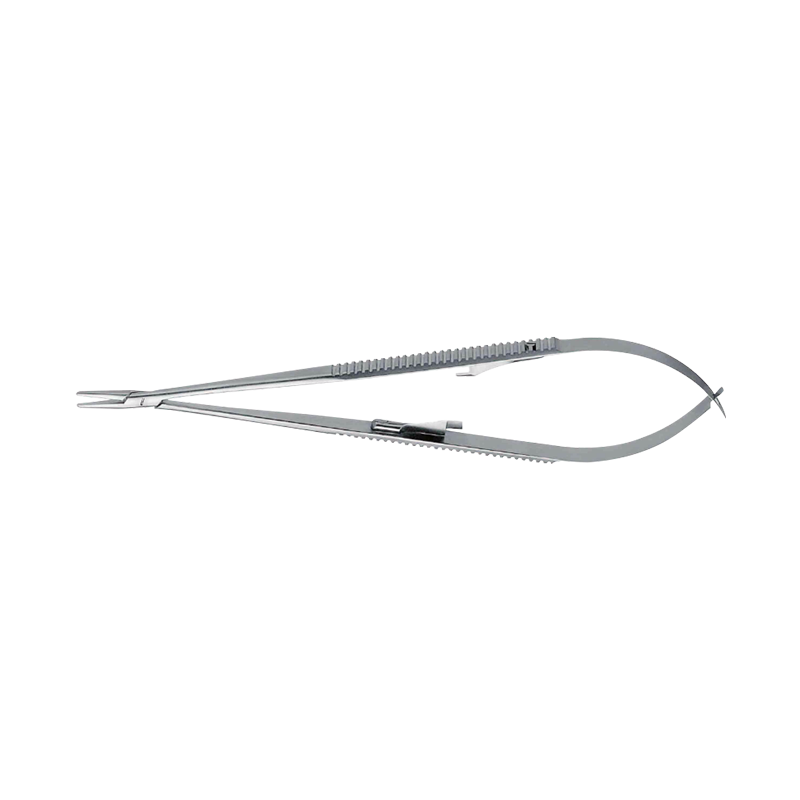 50.0483.18顯微持針鉗直型彎頭,18cm扁柄 頭寬0.8mm鉆石粉涂層 帶鎖扣