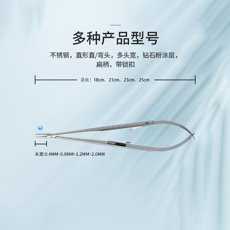 50.0486.18顯微持針鉗直型直頭,18cm扁柄 頭寬2.0mm鉆石粉涂層 帶鎖扣