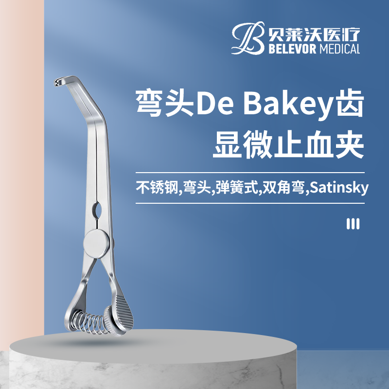 不銹鋼彎頭彈簧式 De Bakey齒 Satinsky顯微止血夾