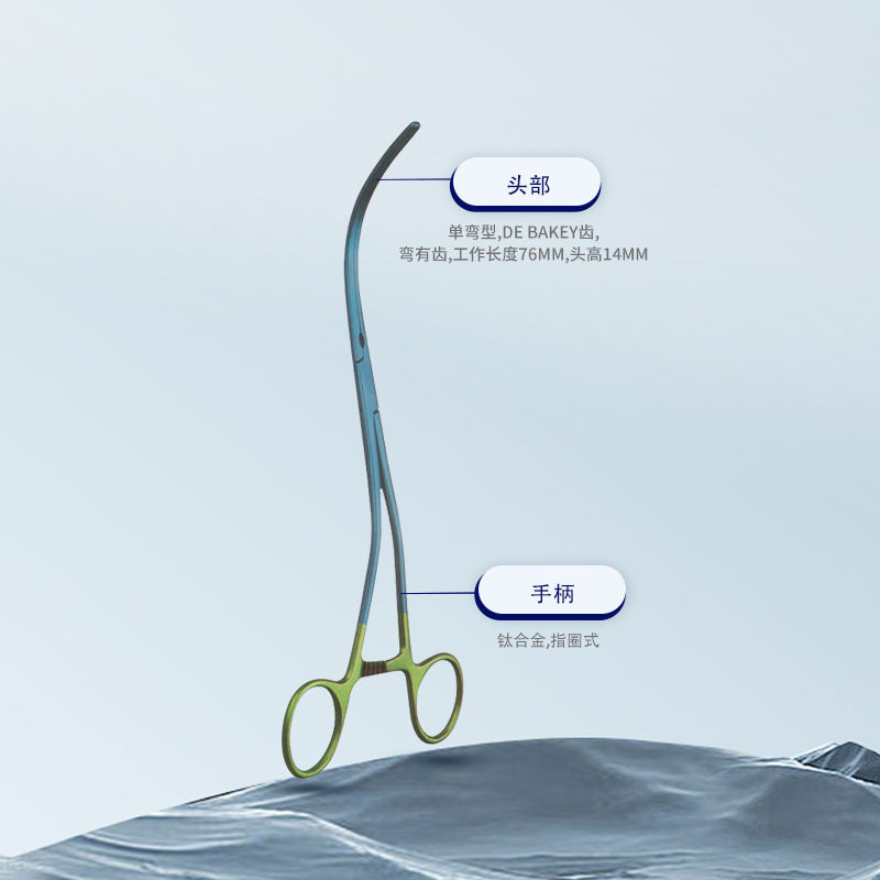 鈦合金 彎有齒,總長18.8cm,工作長度76mm,頭高14mm DE BAKEY齒阻斷鉗