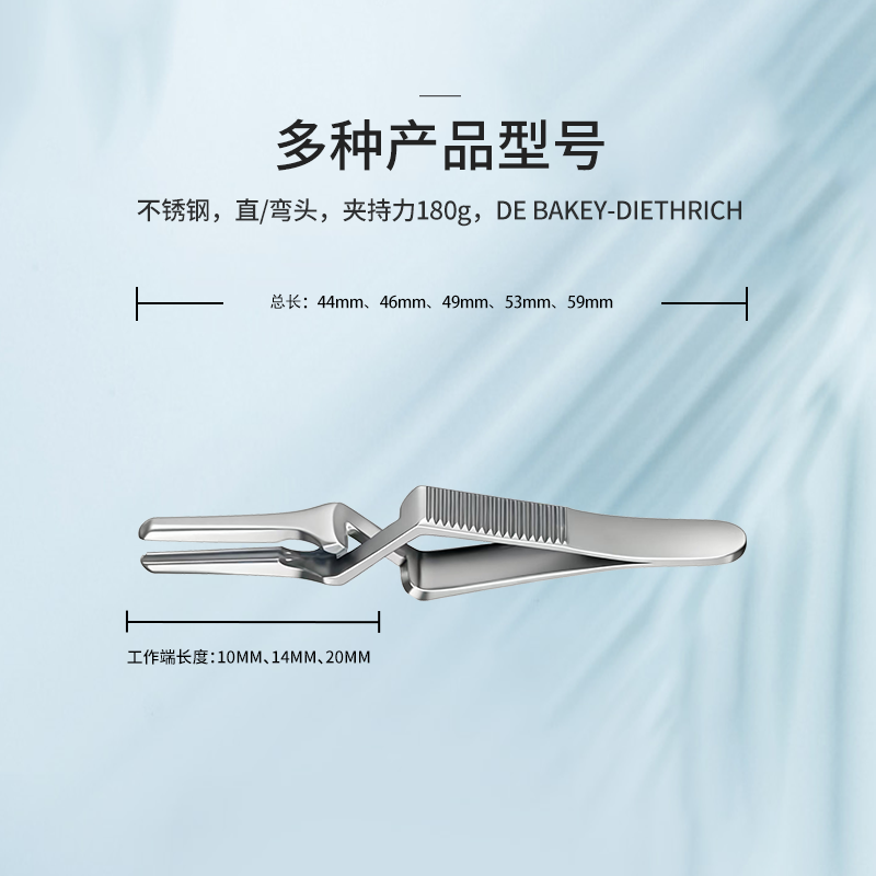 規(guī)格 直頭,總長(zhǎng)49mm,DE BAKEY-DIETHRICH,工作長(zhǎng)度10mm