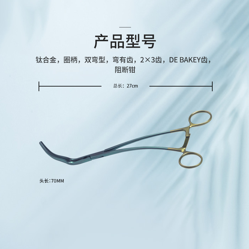 鈦合金 彎有齒,總長(zhǎng)27cm,頭長(zhǎng)70mm,2×3齒 DE BAKEY齒 阻斷鉗 止血鉗
