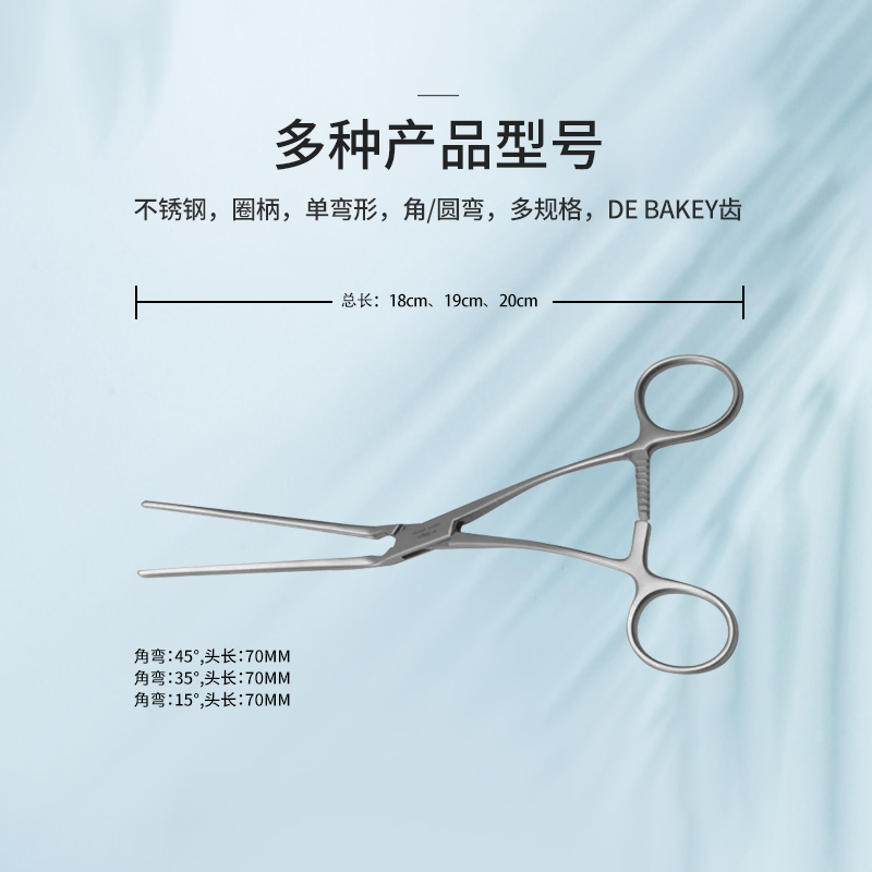 14.0400.19血管鉗單彎型,總長(zhǎng)19cm LELAND-JONES 角彎35°頭長(zhǎng)70mm DE BAKEY齒