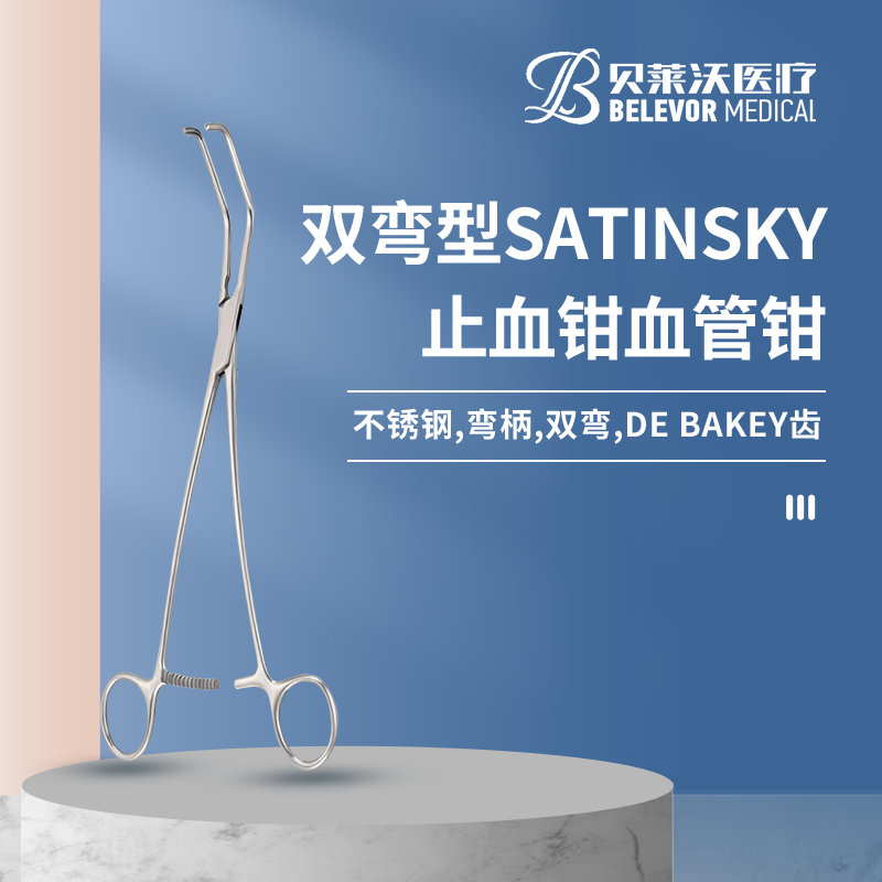 14.0500.25血管鉗雙彎型,25cm 雙彎 SATINSKY 頭寬35mm 彎柄 DE BAKEY齒