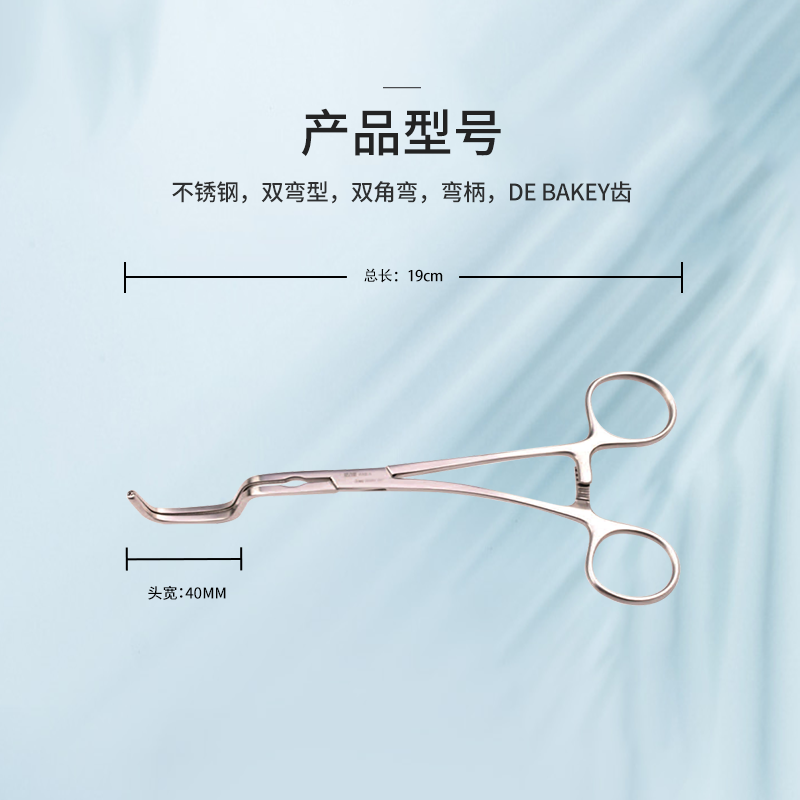 | 14.3535.28 | 血管鉗 | 雙彎型,19cm雙角彎 頭寬40mm 彎柄 DE BAKEY齒 |