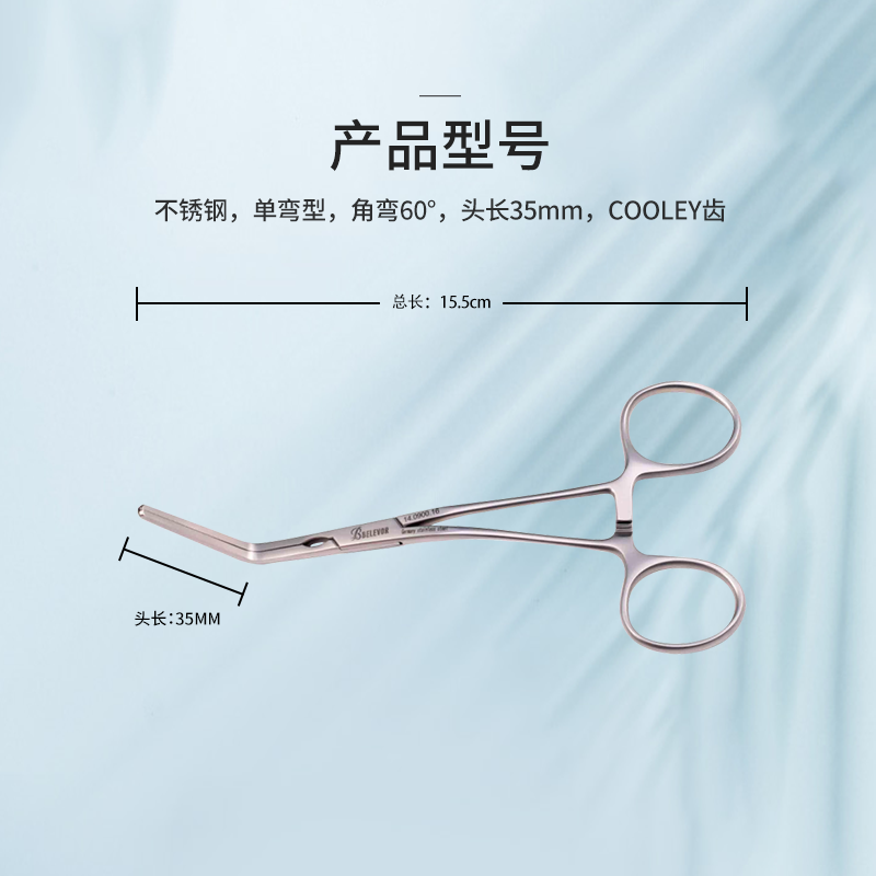14.0900.16血管鉗單彎型,15.5cm COOLEY齒 角彎60°頭長35mm