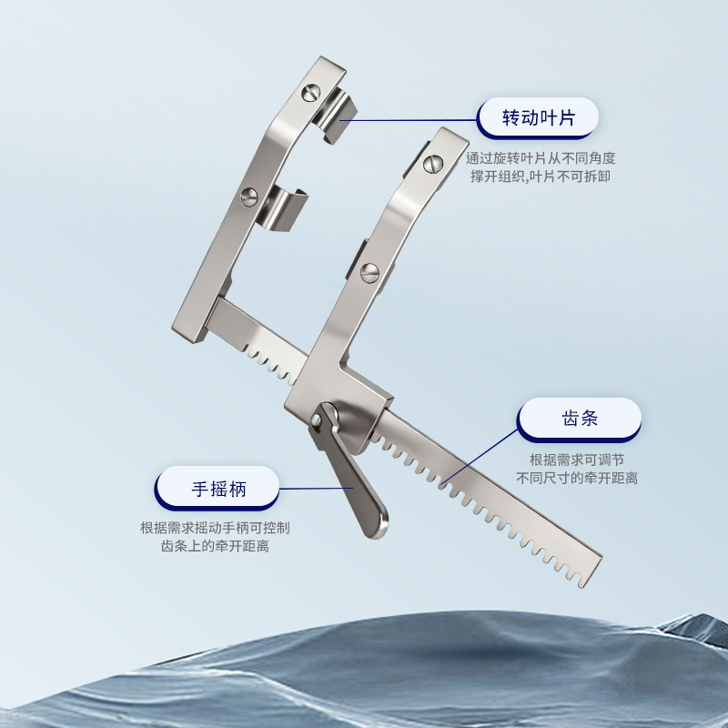 | 50.0105.06 | 胸腔牽開器 | 板式,雙葉轉(zhuǎn)動 葉片寬28mm 葉片深43mm 牽開距離160mm 臂長200mm |
