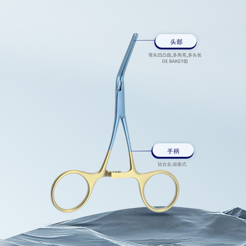 50.0845.15 彎頭凹凸齒,11.5cm角彎15°,DE BAKEY齒,頭長(zhǎng)25mm