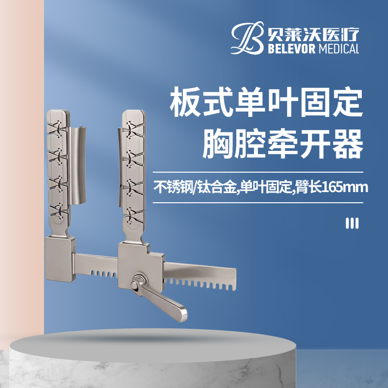 50.0140.00Ti胸腔牽開器板式,鈦合金單葉固定 葉片32mm*100mm 牽開距離170mm 臂長165mm