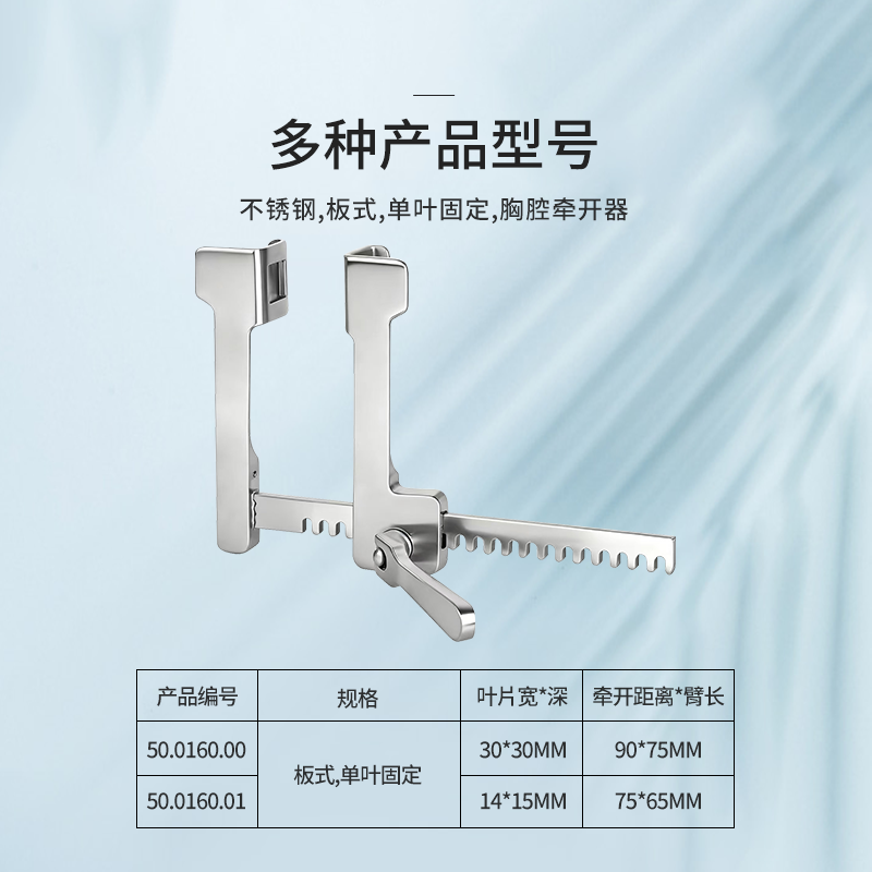 50.0160.01胸腔牽開器板式,單葉固定 葉片14mm*15mm 牽開距離75mm 臂長65mm