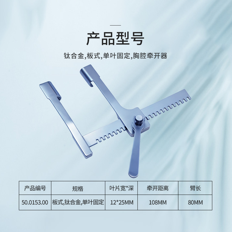 50.0153.00胸腔牽開器板式,單葉固定 葉片12mm*25mm 牽開距離108mm 臂長80mm
