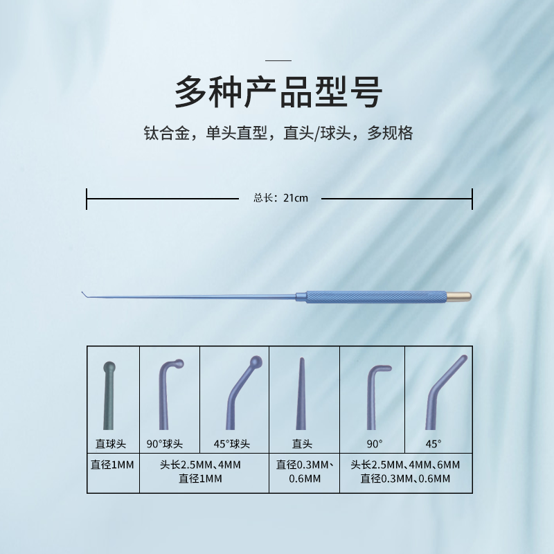 50.0403.10顯微鉤單頭直型,21cm,45°頭長(zhǎng)2.5mm,球頭直徑1mm