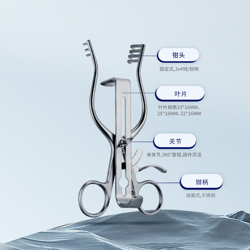08.1050.10 鉗式,16.5cm 三葉 固定式3x4銳鉤