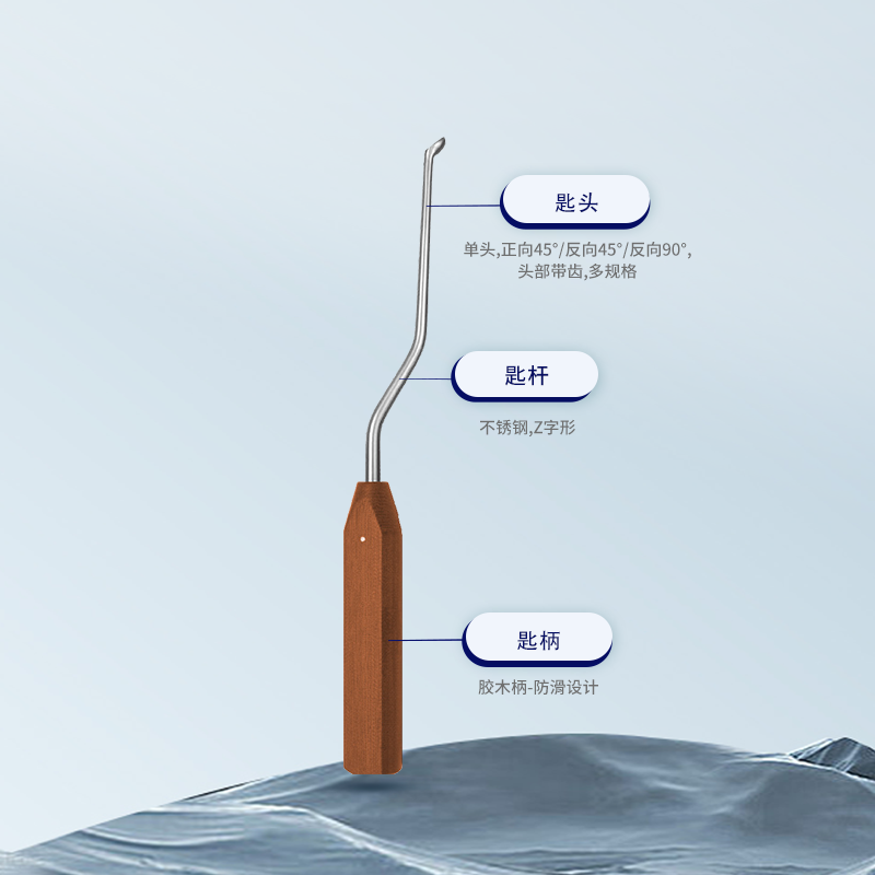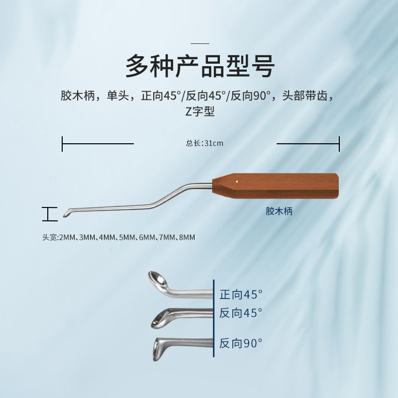 | 12.1075.02 | 骨刮匙 | 單頭 31cm Z字型 膠木柄 反向 90° 頭寬2mm |