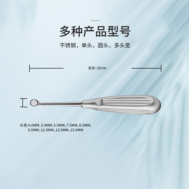 | 12.0930.04 | 骨刮匙 | 單頭,16cm圓頭 頭寬4.0mm | | 12.0930.05 | 骨刮匙 | 單頭,16cm圓頭 頭寬5.0mm | | 12.0930.06 | 骨刮匙 | 單頭,16cm圓頭 頭寬6.0mm | | 12.0930.07 | 骨刮匙 | 單頭,16cm圓頭 頭寬7.5mm | | 12.0930.08 | 骨刮匙 | 單頭,16cm圓頭 頭寬8.0mm | | 12.0930.09 | 骨刮匙 | 單頭,16cm圓頭 頭寬9.0mm | | 12.0930.11 | 骨刮匙 | 單頭,16cm圓頭 頭寬11.0mm | | 12.0930.13 | 骨刮匙 | 單頭,16cm圓頭 頭寬13.5mm | | 12.0930.15 | 骨刮匙 | 單頭,16cm圓頭 頭寬15.0mm |
